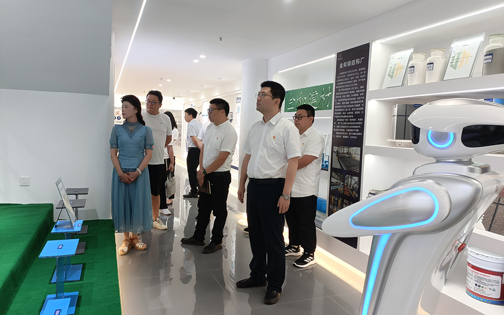 座談交流前,黃藝董事長(zhǎng)一行在鄭蓉總經(jīng)理的陪同下,參觀了集團(tuán)展廳。