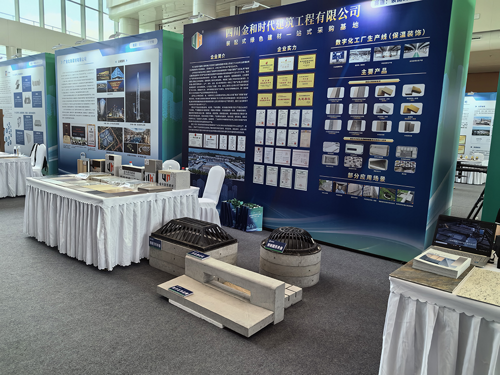 本次大會吸引了省內綠色建材生產(chǎn)企業(yè)、電子產(chǎn)業(yè)、建筑施工單位、設計單位、科研機構等領域的30余家企業(yè)代表參會。作為綿陽僅有的3家企業(yè)參會代表之一,金和集團旗下子公司四川金和時代建筑工程有限公司,對企業(yè)主推的保溫裝飾一體板、市政海綿城市配套標準化部品部件等系列新型建材產(chǎn)品進行展示。