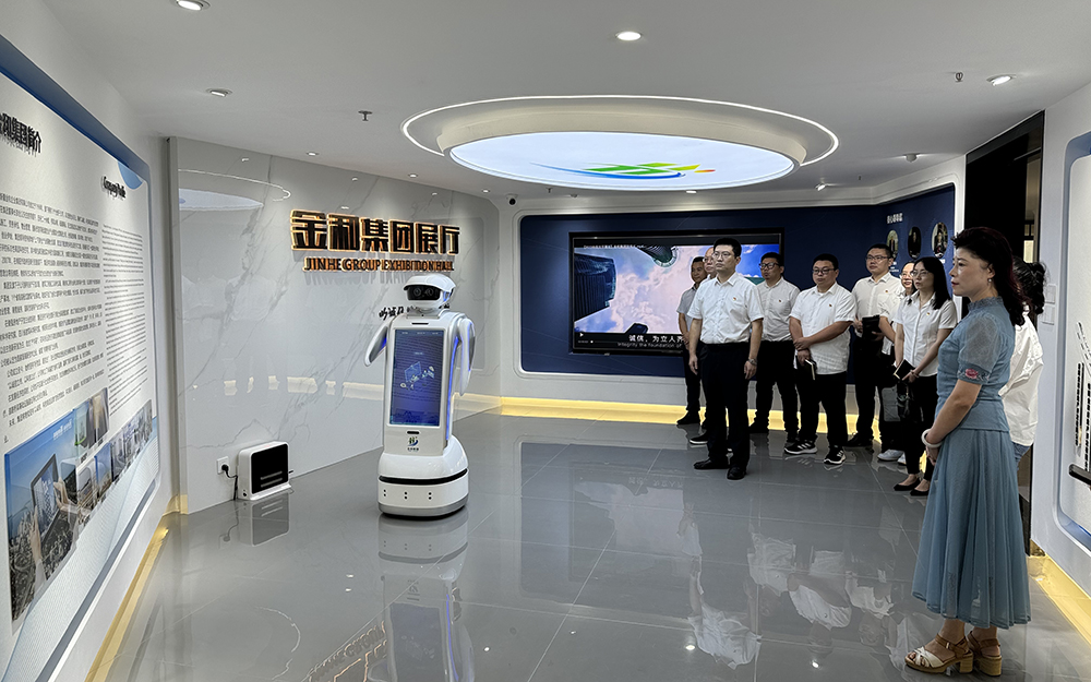 座談交流前,黃藝董事長(zhǎng)一行在鄭蓉總經(jīng)理的陪同下,參觀了集團(tuán)展廳。