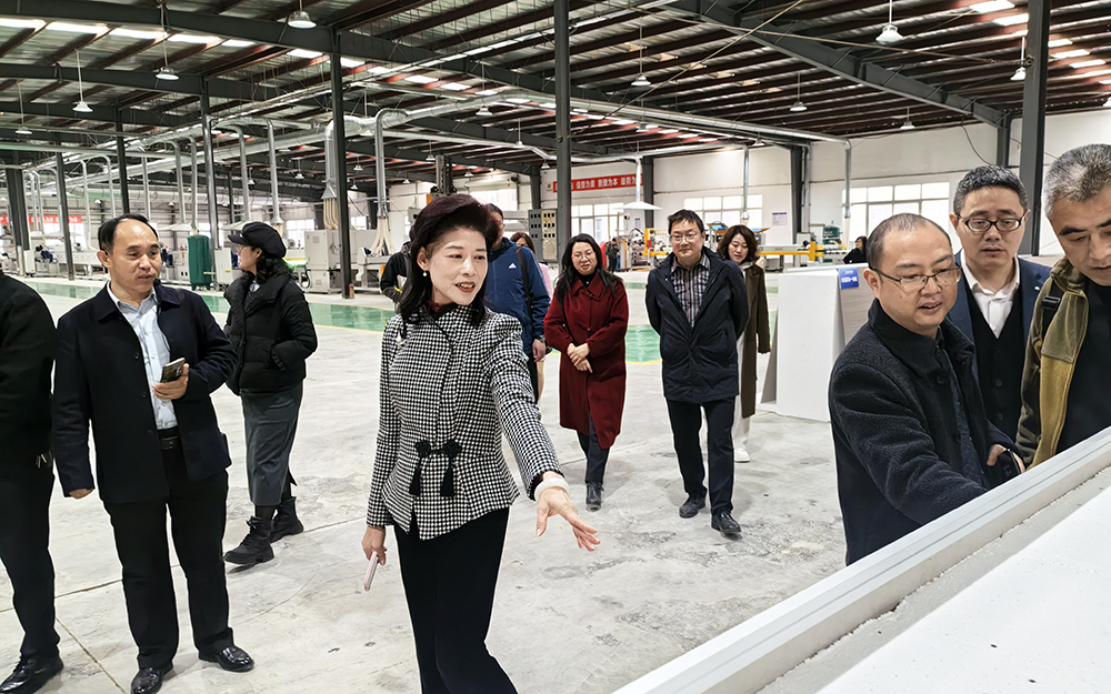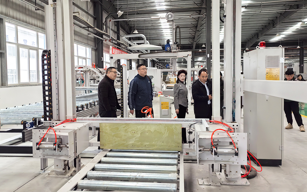 隨后,考察團來到保溫裝飾一體板生產(chǎn)車間。在生產(chǎn)區(qū),專家們在技術負責人的介紹下重點了解了保溫裝飾一體板的生產(chǎn)工藝、性能特點和應用范圍。技術負責人介紹,保溫裝飾一體板共有滲透底漆,外墻中涂、噴涂線、氟碳線、罩面、內(nèi)墻乳膠漆線,全自動復合線,內(nèi)裝平貼包覆線四條生產(chǎn)線,年設計單班生產(chǎn)能力可達120萬平方米成品。